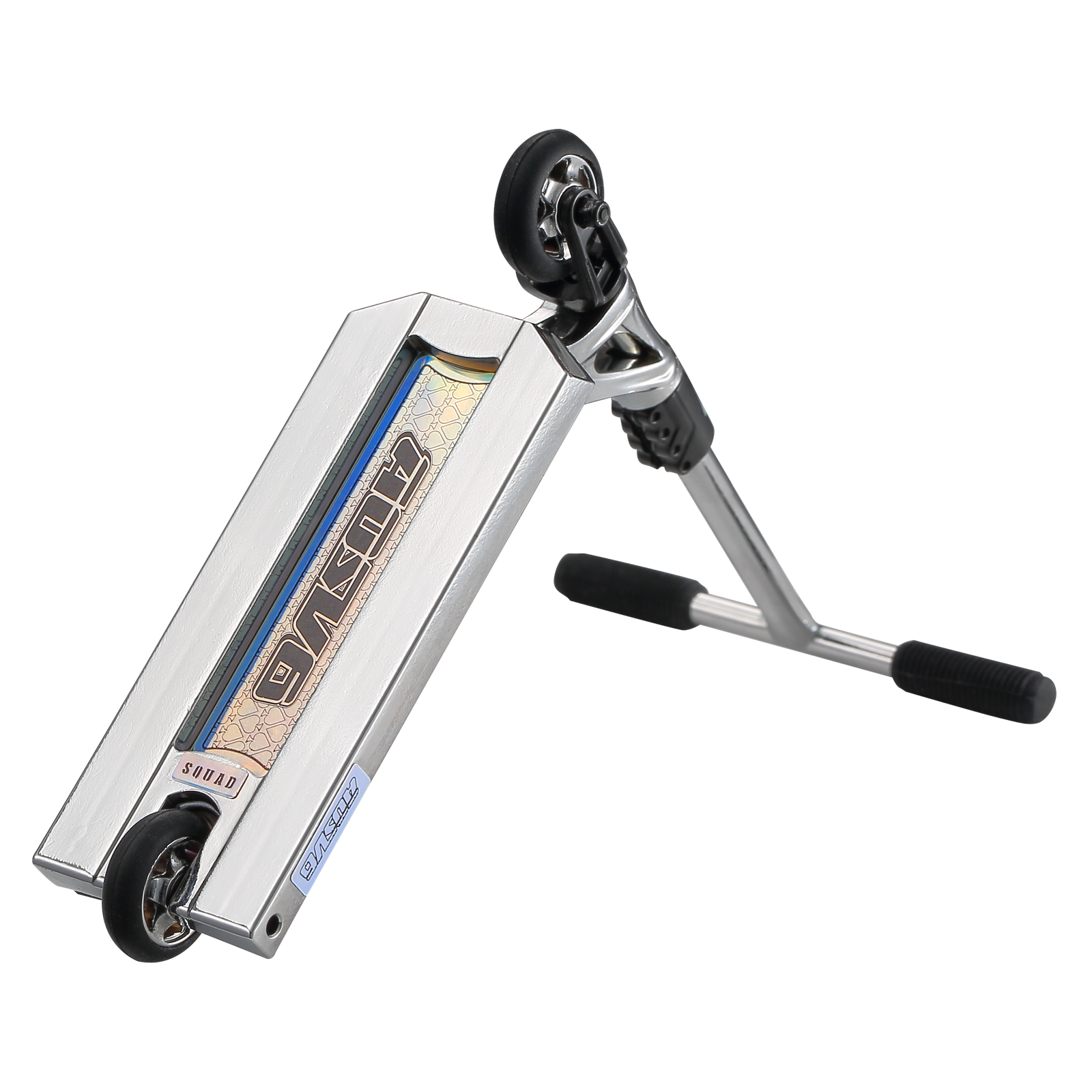 Fabricado con componentes auténticos en miniatura, este finger scooter no solo destaca por su estética, sino por su funcionalidad realista. Incorpora un mini deck AOSV6 Squad de aluminio premium, con superficie acolchada para mayor comodidad y un diseño concavo que replica exactamente la sensación del modelo real.