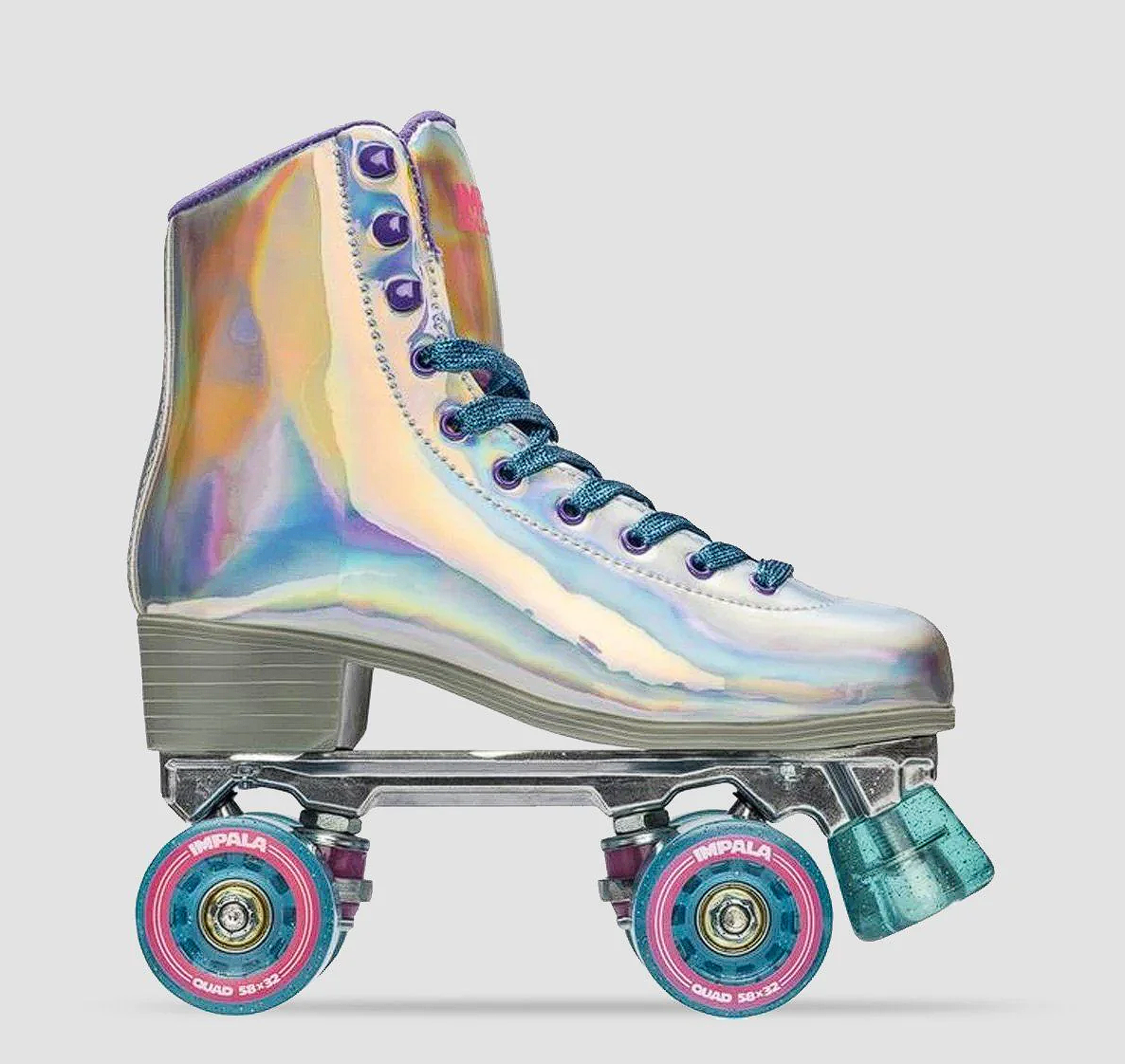 La configuración de cuatro ruedas asegura control y estabilidad sobre diversas superficies. El acabado Holographic aporta un estilo moderno, brillante y original, perfecto para quienes buscan patines únicos y llamativos.